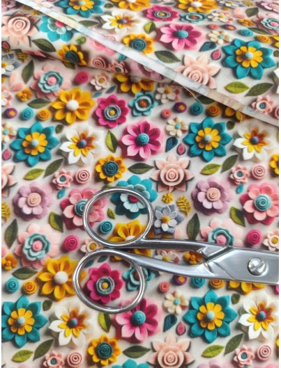 Tela de algodón flores en 3D, 100% algodón, suave y transpirable. Estampado floral de alta resolución para un toque elegante. Peso ligero, ideal para prendas frescas. Ancho estándar, versátil para diversos proyectos. Duradera y perfecta para moda y decoración. para vestidos, camisas, confeccionar sábanas , fundas nordicas , cojines