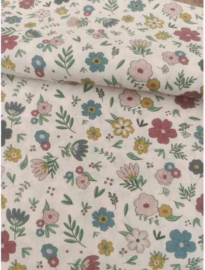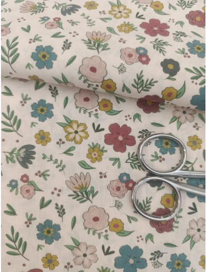 Tela de algodón estampado flores y ramas , 100% algodón, suave y transpirable. Estampado floral de alta resolución para un toque elegante. Peso ligero, ideal para prendas frescas. Ancho estándar, versátil para diversos proyectos. Duradera y perfecta para moda y decoración. para vestidos, camisas, confeccionar sábanas , fundas nordicas , cojines