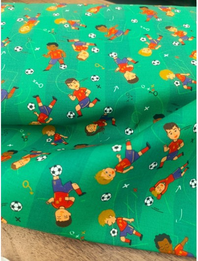 Tela de algodón estampado futbol selección , 100% algodón, suave y transpirable. Estampado floral de alta resolución para un toque elegante. Peso ligero, ideal para prendas frescas. Ancho estándar, versátil para diversos proyectos. Duradera y perfecta para moda y decoración. para vestidos, camisas, confeccionar sábanas , fundas nordicas , cojines