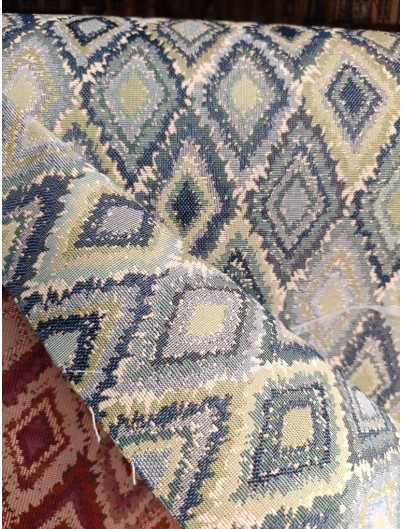 El gobelino es un tipo de tela gruesa y resistente que se teje en un telar especializado llamado telar de alto lizo. Se caracteriza por tener un diseño elaborado, a menudo con motivos históricos, escenas figurativas o paisajes. Se utiliza comúnmente en tapicería para muebles, como sofás, sillas y cojines, así como en la fabricación de tapices decorativos y colgaduras de pared. Muy utilizado para bolsos y chaquetas
