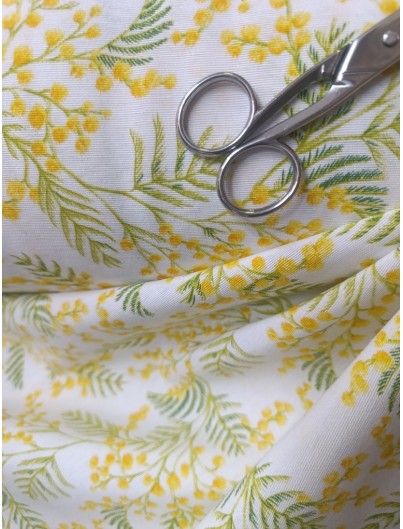 Tela Loneta con estampado de mimosas, para manteles, tapiceria, cortinas, cojines y decoracion del hogar en general. Ideal tambien para mochilas, bolsas de tela...