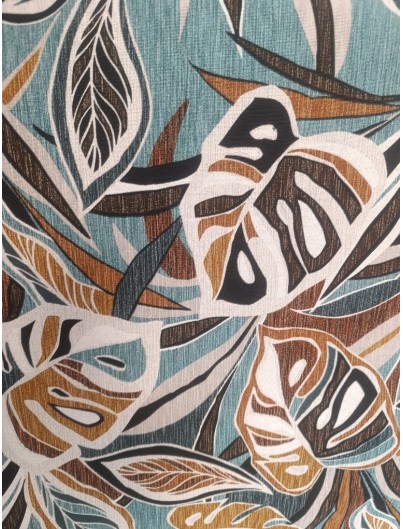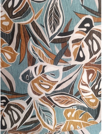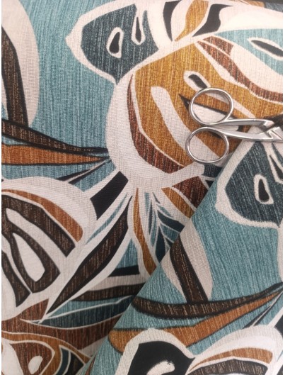 Tela Loneta con estampado de hojas ocres y mostaza, para manteles, tapiceria, cortinas, cojines y decoracion del hogar en general. Ideal tambien para mochilas, bolsas de tela...