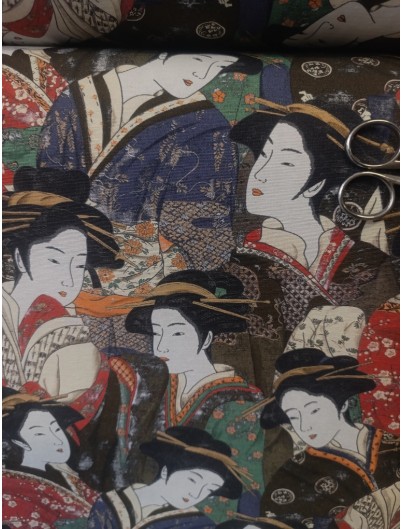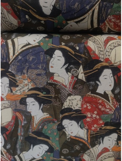 Tela Loneta con estampado japonés de geishas, para manteles, tapiceria, cortinas, cojines y decoracion del hogar en general. Ideal tambien para mochilas, bolsas de tela...