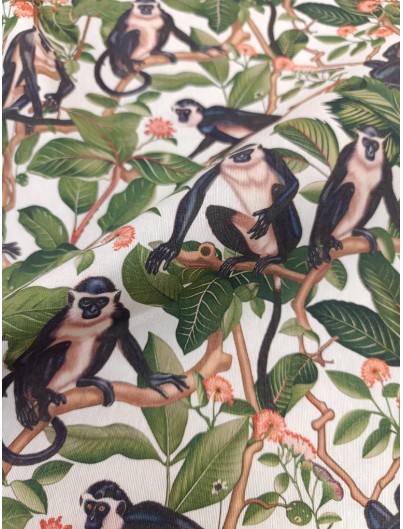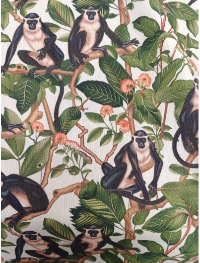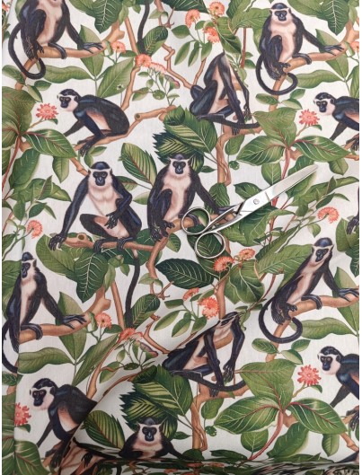 Loneta de algodón estampado de monos. Perfecta para manteles, tapiceria, cortinas, cojines y decoracion del hogar en general. Ideal tambien para mochilas, bolsas de tela...