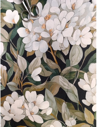 Loneta de algodón floral Magnolias. Perfecta para manteles, tapiceria, cortinas, cojines y decoracion del hogar en general. Ideal tambien para mochilas, bolsas de tela...