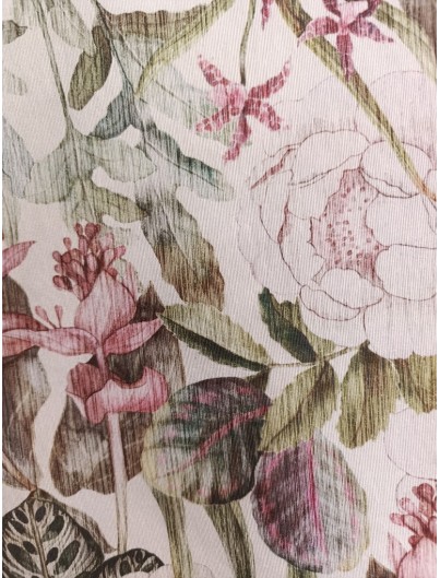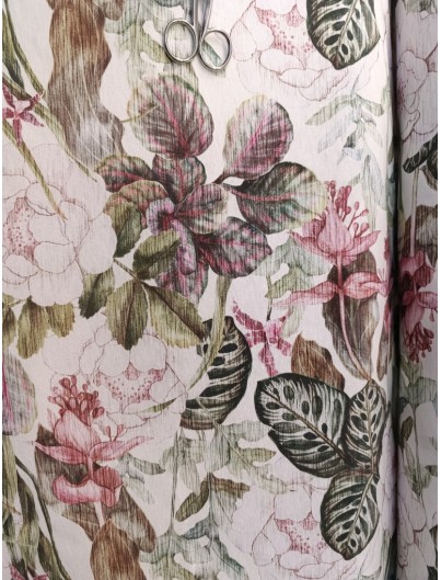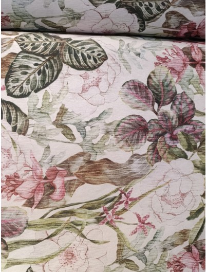 Loneta estampada flores efecto rayado. Perfecta para manteles, tapiceria, cortinas, cojines y decoracion del hogar en general. Ideal tambien para mochilas, bolsas de tela...