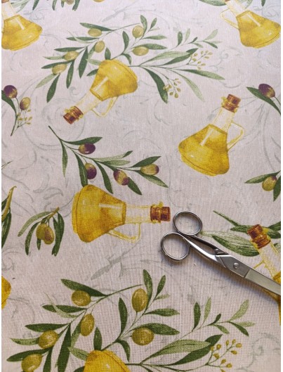 Mantel resinado , teflón , aceiteras y olivas. No necesita costuras
