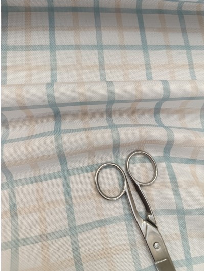 Tela para Mantel cuadro menta y beige, anti manchas, anti manchas, ideal para mantelería , servilletas, bolsa de pan, cojines etc