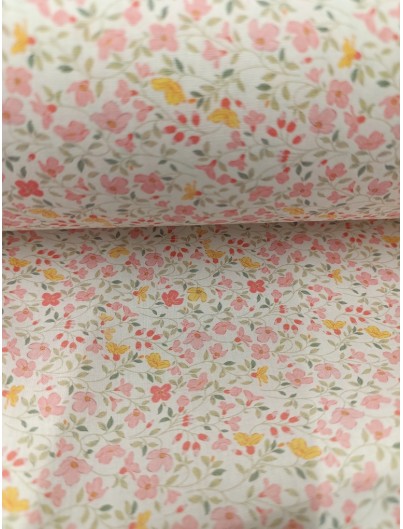 Tela de algodón estampado flores rosas y amarillas en 280, azules y amarillas, para confeccionar sábanas , fundas nordicas , cojines