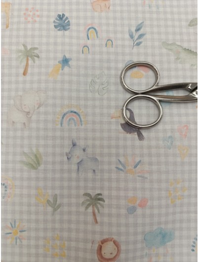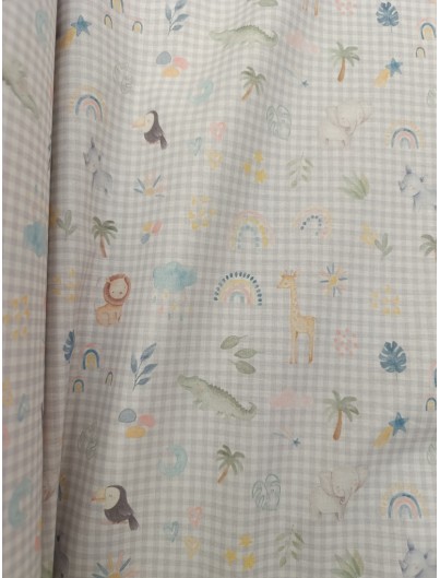 Tela de algodón vichy en 280 de animales y arcoiris , para confeccionar sábanas , fundas nordicas , cojines